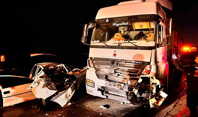 Afyonkarahisar'da tırın otomobili adeta kağıt gibi ezdiği trafik kazasında 3 kişi hayatını kaybetti.