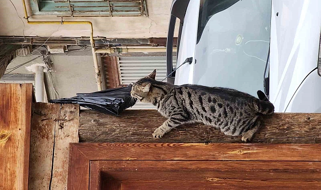 Tokat'ın Zile ilçesinde yaşanan ilginç bir olay, sosyal medyada günün konusu oldu. Dutlupınar Mahallesi'nde iki kedi, bir binanın ahşap kolonunda asılı duran siyah bir poşete ulaşmak için oldukça komik bir mücadele sergiledi.