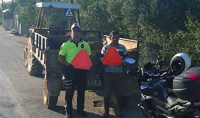 Tarımsal faaliyetlerin yoğun olarak yaşandığı bölgelerdeki yollarda seyreden traktörler için Muğla Emniyet Müdürlüğü Trafik Tescil ve Denetleme Şube Müdürlüğü ekipleri hem denetim yapıyor, hem de reflektörü olmayan traktörlerin römorklarına reflektör hediye ediyor.