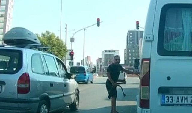 Mersin'de bir minibüs şoförü, trafikte tartıştığı aracın önünü keserek içindekilere halatlı saldırıda bulundu. O anlar, otomobilin kamerasına saniye saniye yansıdı.