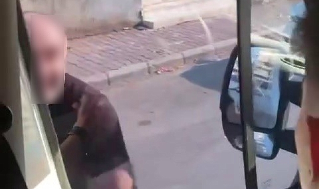 Öfkeli kişi çevredekiler tarafından sakinleştirilirken, o anlar minibüste korku dolu dakikalar yaşayan yolcuların cep telefonu kameralarına yansıdı.