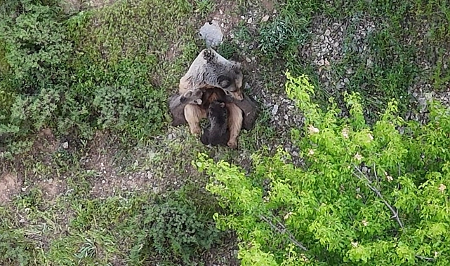 Uzun süredir üç yavrulu anne ayıyı takip ettiğini dile getiren gazeteci İsmail Yoleri, "Bugün de yavrularını emzirdiği anlara denk geldim. Yavrular süt emerken onları rahatsız etmemek için dronla kısa bir çekim yaptım. Böyle bir ana denk geldiğim için çok mutlu oldum" dedi.