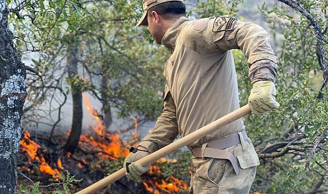 Etrafı çevrilerek kontrol altına alınan yangını soğutma çalışmalarının sürdüğü belirtildi.