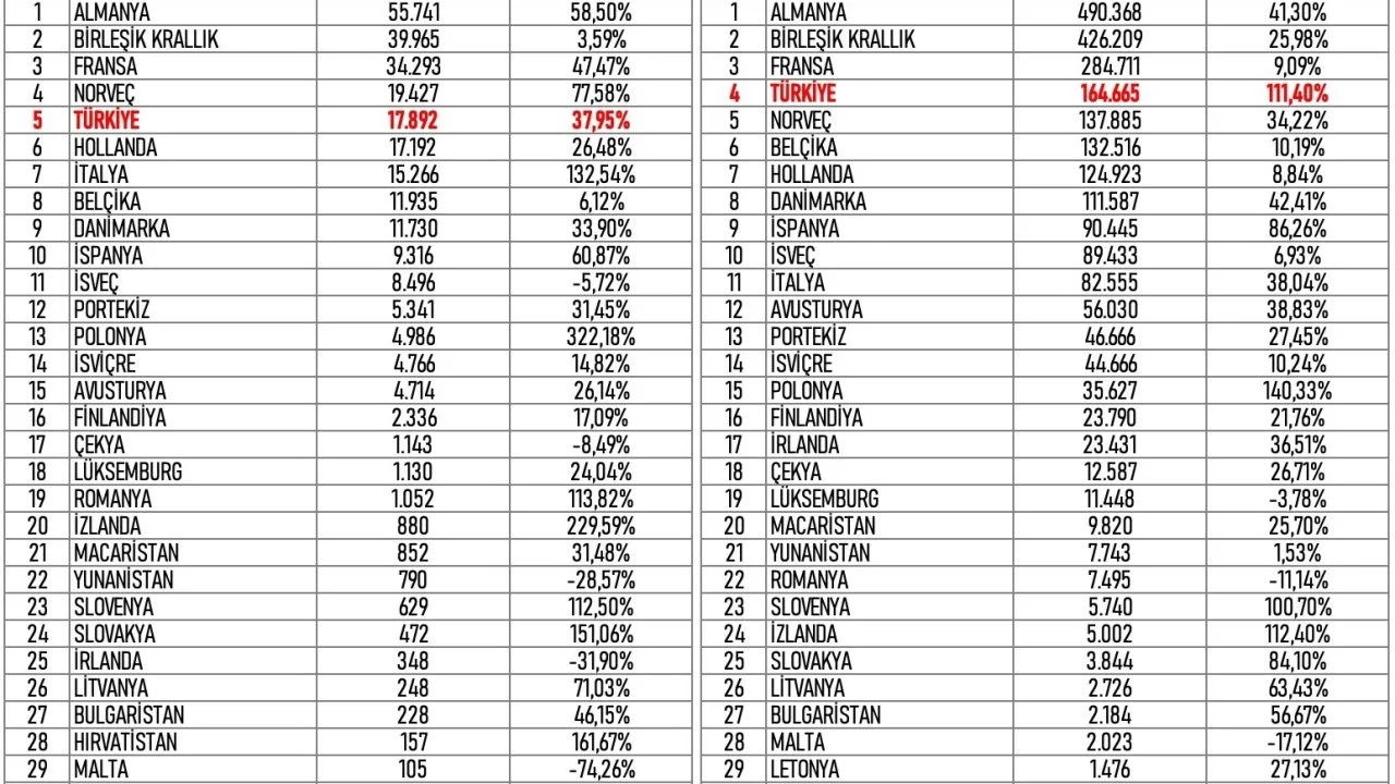 Toplam satış adedi bazında Almanya, Birleşik Krallık ve Fransa listenin ilk üç sırasını paylaşırken, Türkiye bu dev ekonomileri yakından takip etmeyi sürdürüyor. Uzmanlar, Türkiye’deki bu güçlü ivmenin arkasında yerli üretim hamlesi, artan model çeşitliliği, şarj istasyonu ağının genişlemesi ve tüketici nezdinde yükselen çevre duyarlılığının yattığına dikkat çekiyor.
