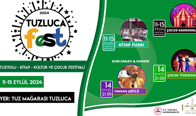 TUZLUCA KİTAP KÜLTÜR VE ÇOCUK FESTİVALİ 11-15 Eylül tarihleri arasında Tuz Mağarasında gerçekleşecektir.