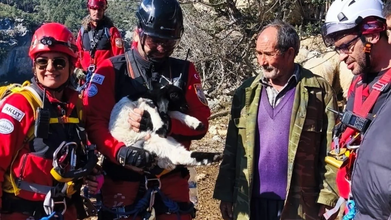 Mersin’in Erdemli ilçesinde uçurumdan düşen kuzu kurtarma ekiplerinin çalışmasıyla bulunduğu yerden alınarak sahibine teslim edildi.