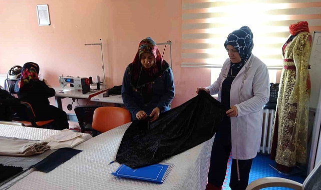Giyim kursunda stres attıklarını söyleyen kursiyer Nejla Dincer ise "Haftanın 5 günü giyim kursuna geliyoruz. Güzel vakitler geçirip burada ürettiğimiz giysilerle ev ekonomimize destekte bulunuyoruz. Bu kurslarla stres atıyoruz" dedi.