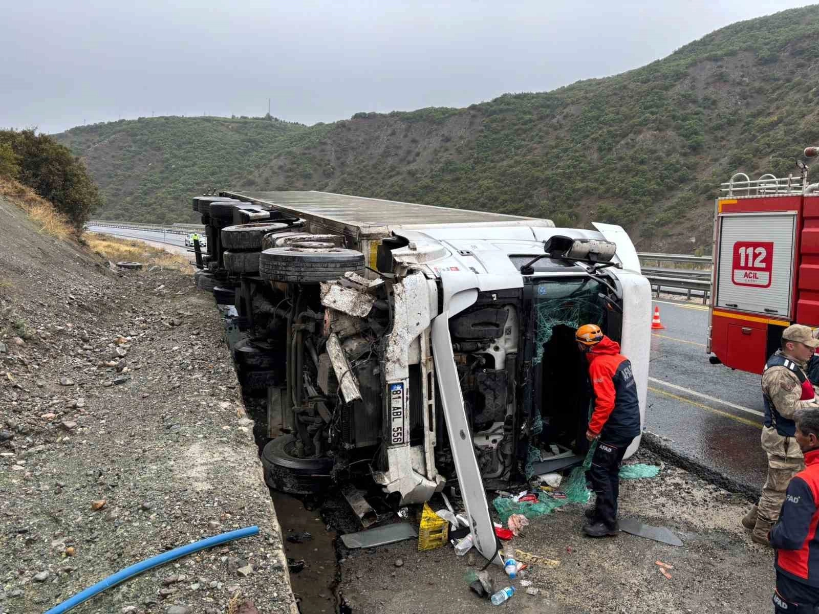 Erzincan'ın Üzümlü İlçesinde tır devrildi, 1 kişi yaralandı.
