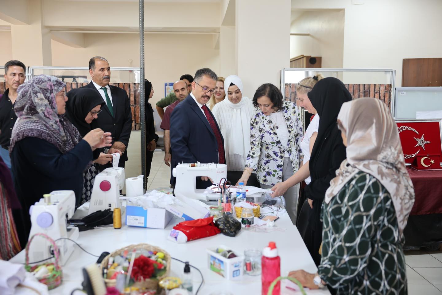Iğdır Valisi Ercan Turan ve eşi, Halk Eğitim Merkezi kurslarını ziyaret ederek kursiyerlerin el emeği ürünlerini inceledi.