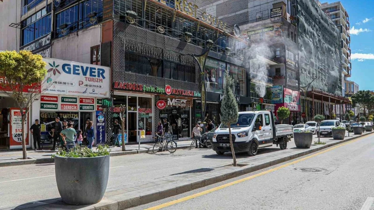 Van Büyükşehir Belediyesi kent merkezindeki cadde ve sokaklara gül suyu sıktı.