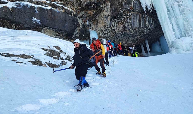 Burada, sarkıt ve dikitlerin oluştuğu mağarayı ve yaklaşık 20 metre yüksekliğindeki buz tutan şelaleyi inceleyip fotoğraf çeken dağcılar, ardından inişe geçti.