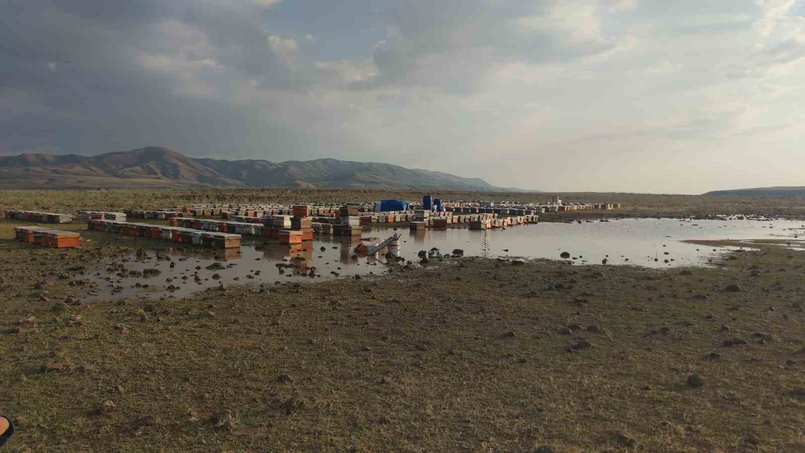Van'ın Özalp ve Muradiye ilçesi kırsalında etkili olan sağanak yağmur arı kovanlarına zarara verdi.