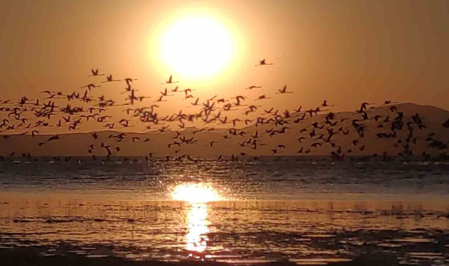 Tarihi yapıları ve doğal güzellikleri ile on plana çıkan Van, gün batımı ile de farklı güzelliklere ev sahipliği yapıyor. Güneşin batışının en iyi izlendiği yer olan kentte, güneşin kızıllığı muhteşem manzaralar oluşturuyor. Van Gölü'nün 30 kilometre doğusunda bulunan bin 808 rakımdaki Erçek Gölü'nde oluşan kızıllık, havzanın narin misafirleri flamingolar ile güzel manzaralar oluşturdu.