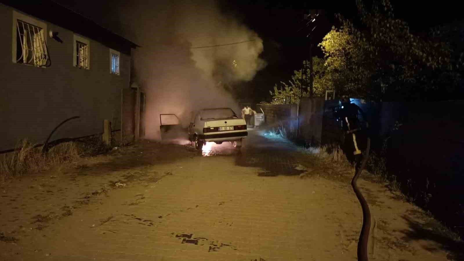 Van'ın Erciş ilçesinde seyir halindeyken alev alev yanan otomobil, itfaiye ekipleri tarafından söndürüldü.