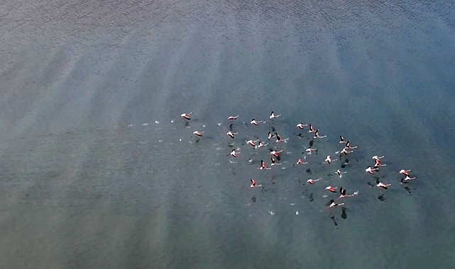 Van Gölü havzasının göçmen misafirleri flamingolar, hava sıcaklığının mevsim normallerinin üzerinde seyrettiği bölgede konaklama sürelerini uzattı.