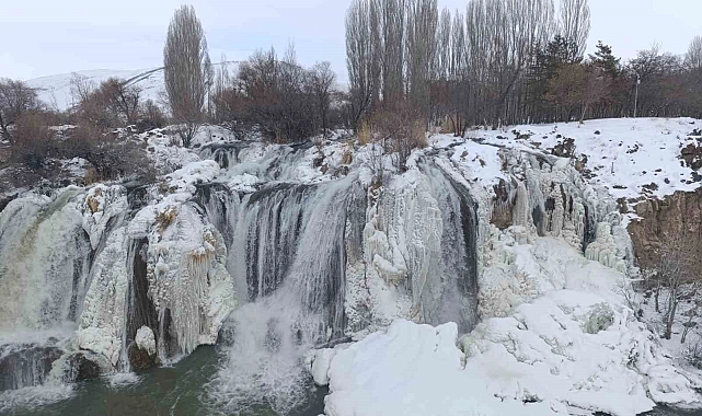 Van'ın Muradiye ilçesinde bulunan Muradiye Şelalesi, kışın buzla kaplanmasıyla kartpostallık görüntüler oluşturdu. Doğal güzelliğiyle her mevsim ziyaretçilerini büyüleyen şelale, son kar yağışlarıyla birlikte beyaz örtüye bürünerek eşsiz bir manzara sundu.