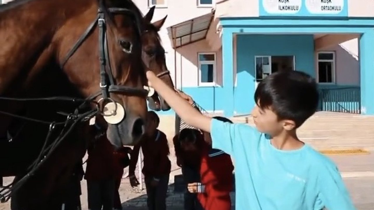 İHA'nın haberine göre Bu kapsamda, Edremit ilçesindeki Köşk İlk ve Ortaokulu çevresinde devriye görevi yapan Atlı Jandarma ve Trafik Timleri, öğrencilerin güvenliğini sağlarken onlarla da bir araya geldi. Atlı birlikleri gören çocuklar, atları severek keyifli anlar yaşadı.