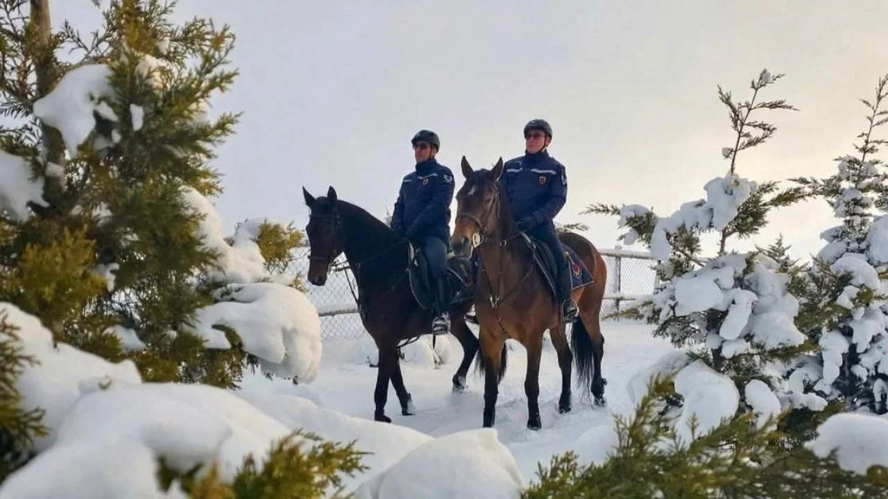 İHA'nın haberine göre Kar kalınlığının yer yer yüksek seviyelere ulaştığı bölgede devriye atan atlı jandarmalar, özellikle motorlu araçların girmekte zorlandığı arazi şartlarında ve yaya trafiğinin yoğun olduğu alanlarda aktif rol alıyor. Parklar, mesire alanları ve kırsal bölgelerde güvenliği sağlayan timler, vatandaşların huzurunu temin etmek için 7 gün 24 saat esasına göre görev yapıyor.