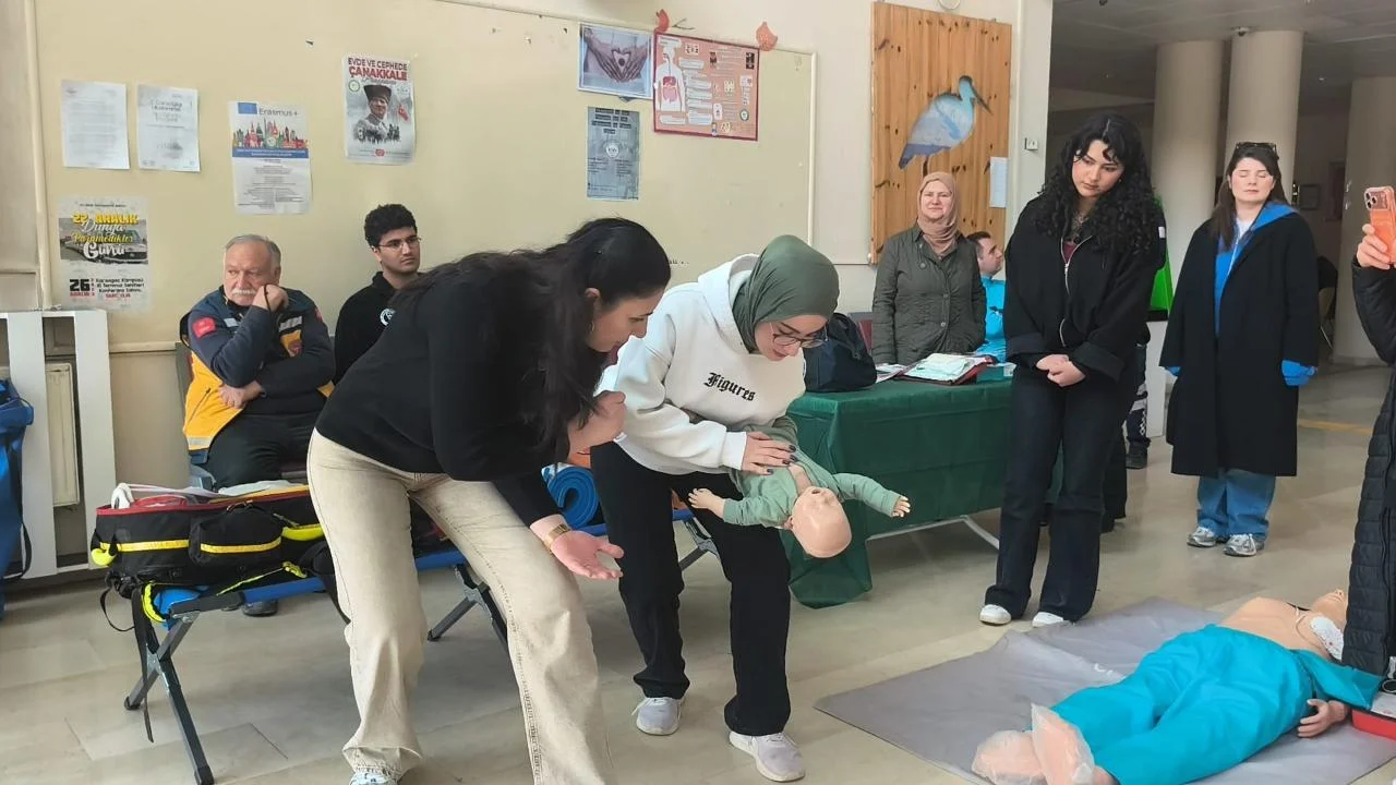 Eğitimde uzmanlar, olası bir kaza veya acil sağlık durumunda saniyelerin önemine dikkat çekti. Kurulan istasyonlarda maketler üzerinde;
