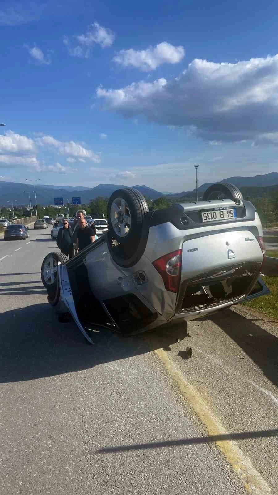 Sakarya'nın Serdivan ilçesinde virajda sürücüsünün kontrolünden çıkan otomobil ters döndü. Kazada 2 kişi hafif şekilde yaralandı.