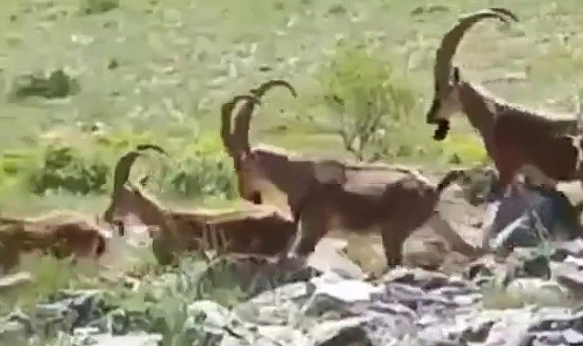 Adıyaman'da sayıları her geçen gün artan yaban keçileri Çelikhan ilçesi Ulubaba dağında bu kez vatandaşın cep telefonu kamerasına yansıdı. Onlarca yaban keçisinden oluşan sürü, dağın zirvesinde ilerlerken bir vatandaş tarafından cep telefonuyla kaydedildi.