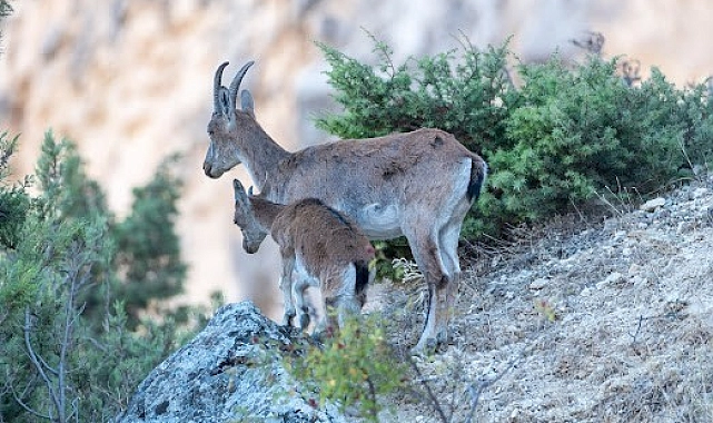 Erzincan'da avlanması yasak ve koruma altında olan yaban keçileri, Munzur Dağları eteklerinde görüntülendi.