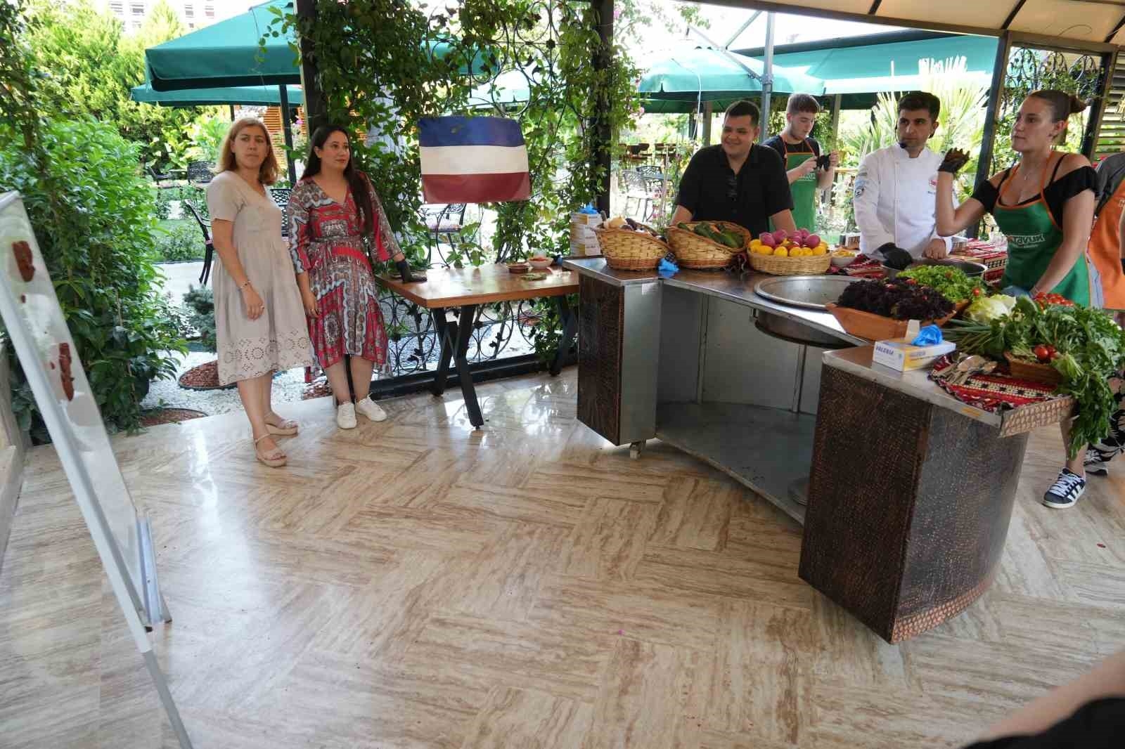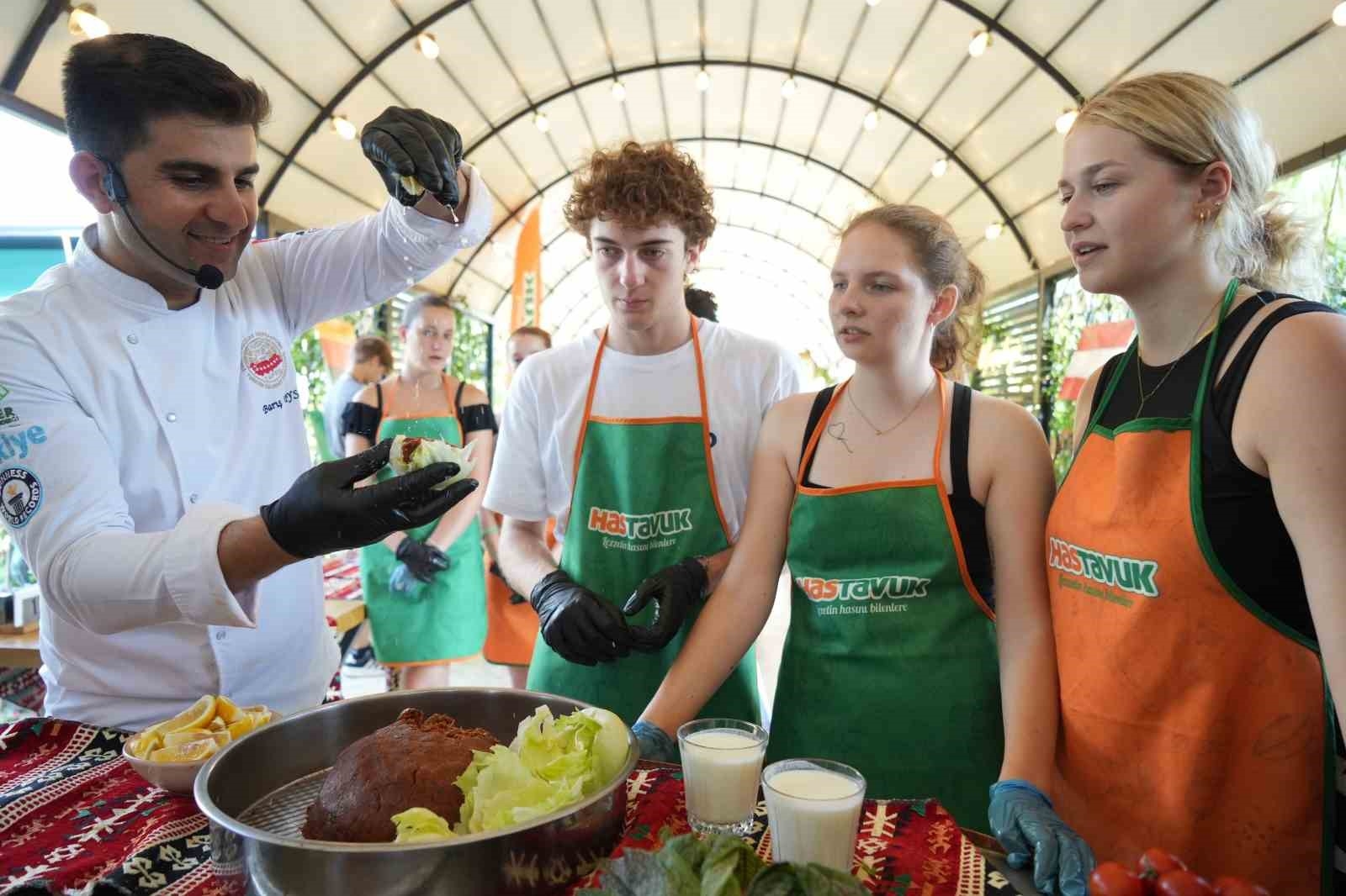 Gençler Arası Değişim Programı çerçevesinde yurt dışından Bursa'ya gelen öğrenciler, 10 gün belirlenen ailelerin yanında Türk kültürünü, örfünü ve yemek lezzetlerini tatmanın fırsatını buldu. İstanbul, Eskişehir, Çanakkale ve Bursa programları çerçevesinde ziyaretler yapan öğrenciler, Hastavuk sponsorluğunda 'Türk Yemekleri Workshop'una katıldı. Örnek yemek olarak çiğköfte yapımı için kolları sıvayan öğrenciler, renkli görüntüler ortaya koydu. Önlüğü giyen öğrenciler, bulgur ile karıştırdıkları salça, soğan, baharat ve yeşilliklerle çiğköftenin serüvenine dahil oldu. Kıvam tutturmak için boncuk boncuk terleyen öğrenciler, süre sonunda ellerini havaya kaldırarak MasterChef yarışmasını aratmayan görüntülere imza attı. Türkiye'nin vazgeçilmez lezzetlerinden çiğköfteyi hazırlayan öğrenciler, karşılarına konulan tahtaya fırlattıkları çiğköfte kıvam testini de başarıyla geçti. Çiğköfteyi çok sevdiklerini belirten öğrenciler, hazırlarken de eğlenceli dakikalar yaşadı.