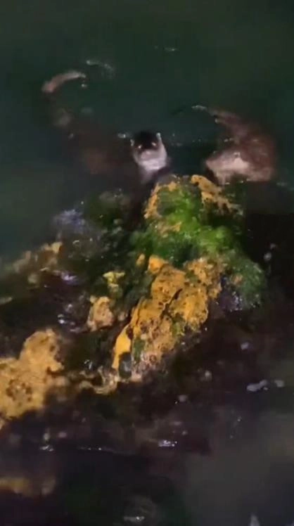 Yalova'nın Çiftlikköy ilçesi kıyısında, nesli tükenmekte olan türler arasında yer alan 2 su samuru bir vatandaşın cep telefonu kamerasıyla görüntülendi.