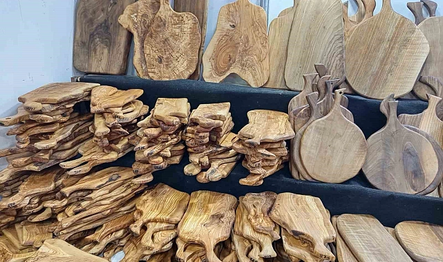 Diyarbakır'da açılan 6. gurme ve yöresel lezzetler fuarı 5. gününde misafirlerini ağırlamaya devam ederken, Kastamonu'nun İnebolu ilçesinden fuara katılan bir esnaf, zeytin ve şimşir ağacından yaptığı ahşap ürünleri sergiledi.