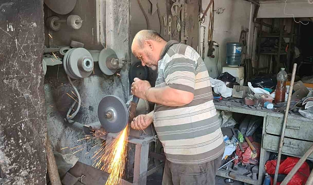 Durmuş, 200 yıldan fazladır, kökleri Osmanlı dönemi demir ustalarına dayanan dükkanda babasından devraldığı mesleği atölyede sürdürmeye çalıştığı bıçakların demir ve çiviyi rahatlıkla kesebildiğini belirtti.
