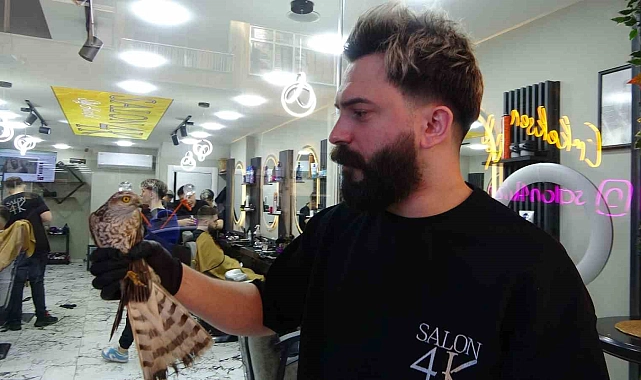 Rize'de yüksek kesimlerden şehir merkezine kadar inen yavru atmaca bir kuaförün tabelasına çarpıp yakalanınca kuaför dükkanının adeta maskotu haline geldi.