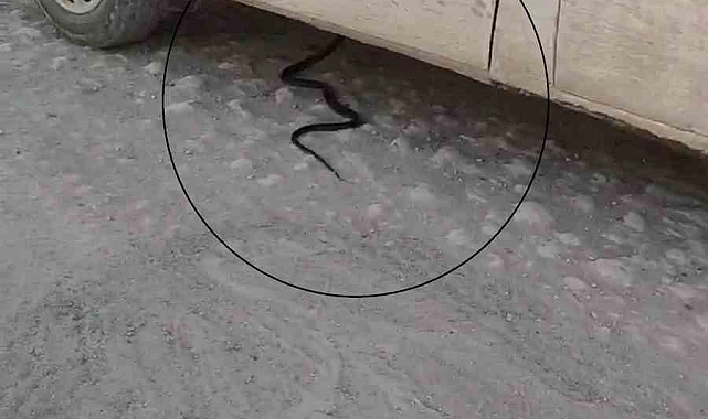 Araca giren yılanın kendiliğinden araçtan çıkarak bölgeden uzaklaştığı öğrenildi.