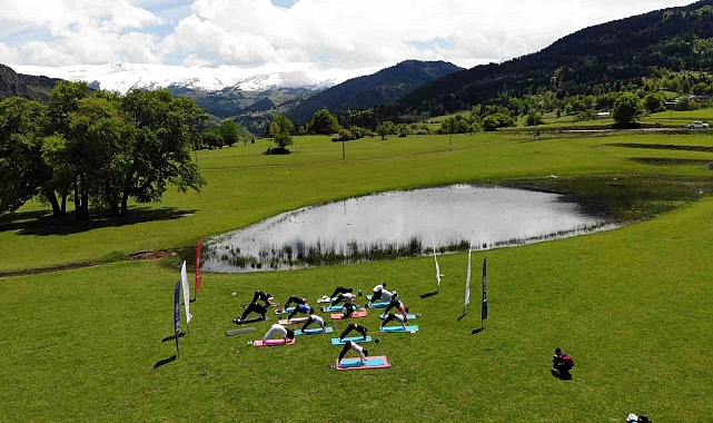 Ardanuç'un Tosunlu Köyünde bulunan Usot Gölü'ne çıkanlar doğanın ve güzel havanın tadını çıkartırken, gölün son konukları yoga tutkunları oldu.