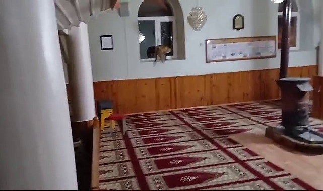 Erzurum'un Tortum ilçesinde camiye giren tilki cemaati gülümsetti.