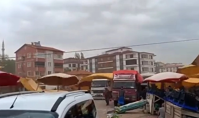 Yozgat'ın Sarıkaya ilçesinde etkili olan fırtına, ilçede kurulan semt pazarında etkili oldu. Alışveriş yapmak için pazara giden vatandaşlar fırtınanın etkisini göstermesiyle zor anlar yaşadı. Pazardaki şemsiyelerin uçtuğu anlar cep telefonu kamerasıyla görüntülendi.
