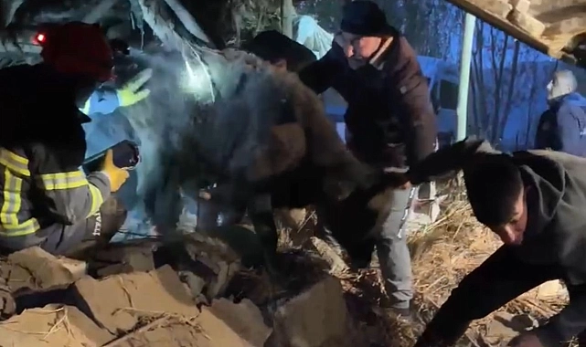 Hakkari'nin Yüksekova ilçesinde gece saatlerinde bir ahırın çökmesiyle köylüler ve itfaiye ekipleri yaralı hayvanları kurtarmak için seferber oldu.